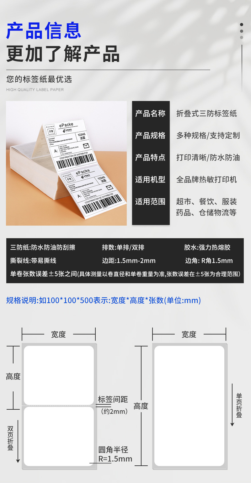 Folding self-adhesive label thermal paper express printing paper E-mail printing cross-border packaging